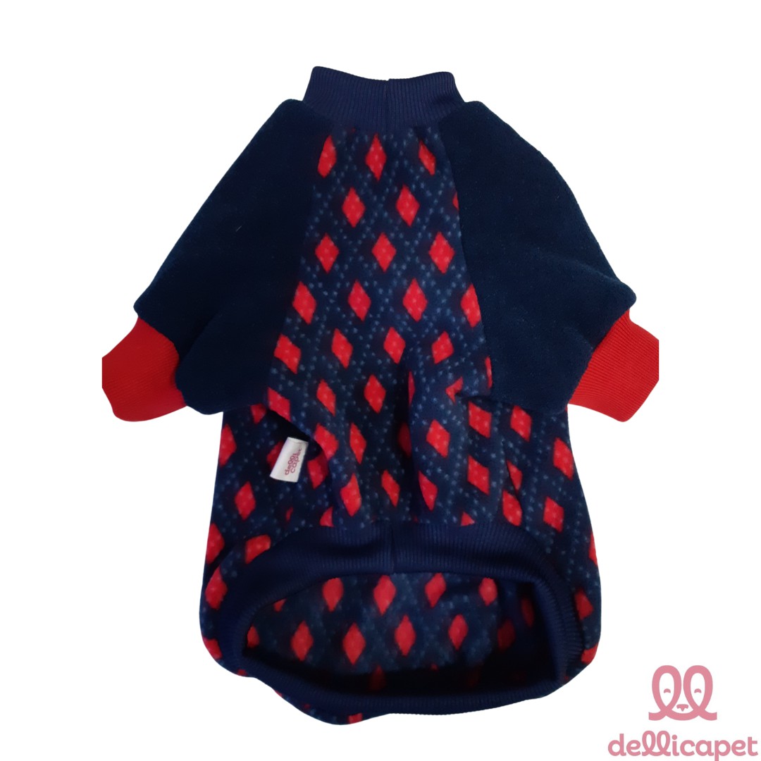 Roupinha de Inverno com mangas e punhos - em tecido microsoft, super quentinho e confortável, na cor azul com vermelho xadrez.