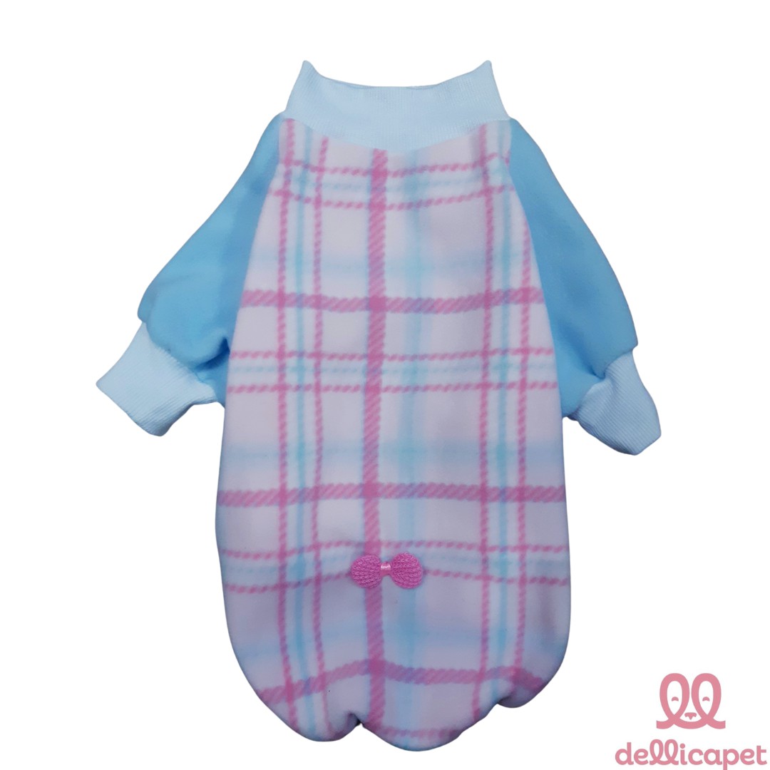 Roupinha de Inverno com mangas e punhos - em tecido microsoft, super quentinho e confortável, na cor rosa e azul claro xadrez.