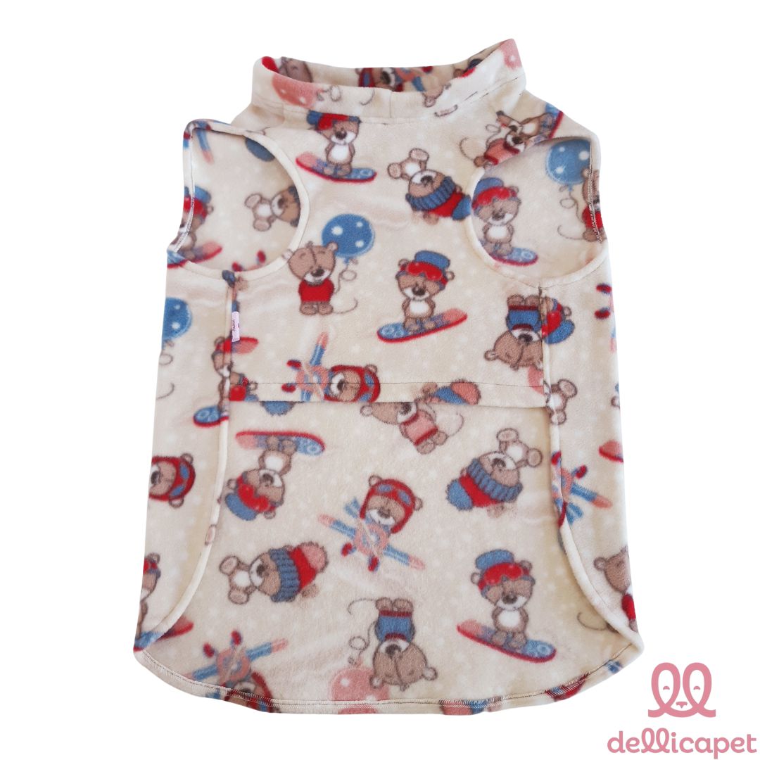 Roupinha de Inverno em tecido microsoft, super quentinha e confortável, na cor bege com estampa de ursinhos.