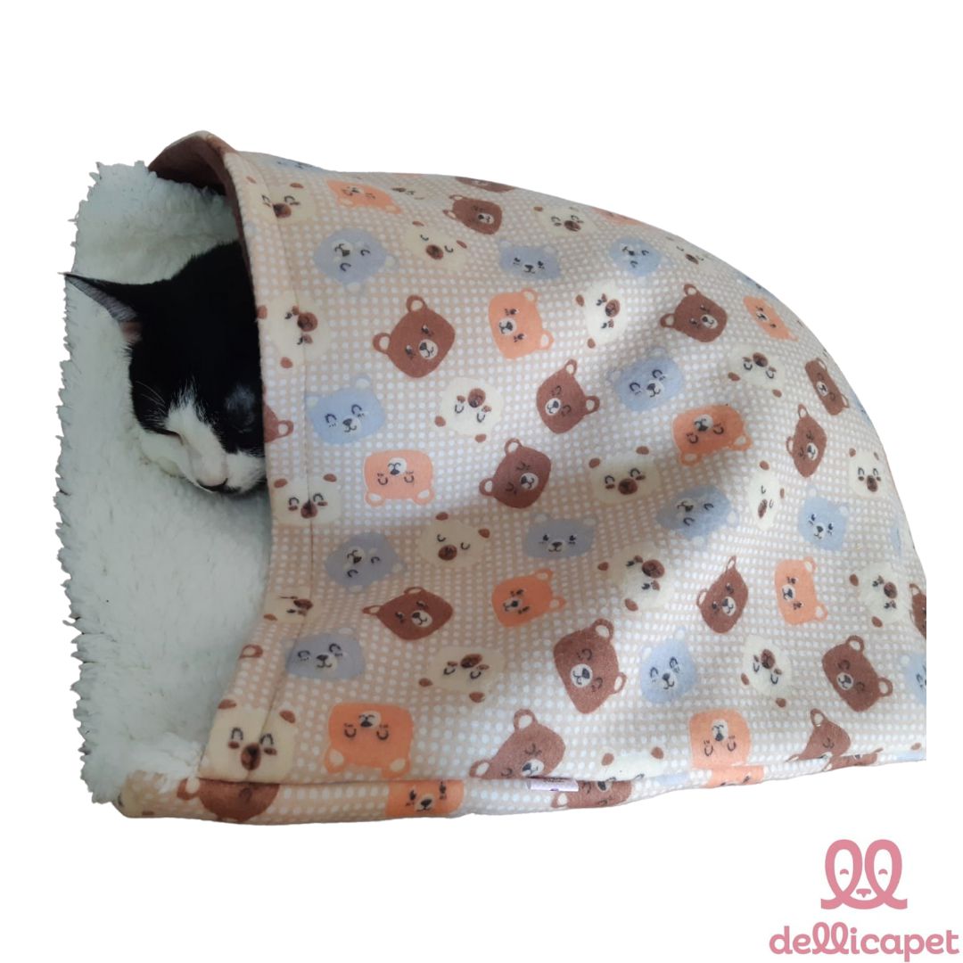 Saco de dormir para pequenos Pets, em especial gatinhos, que adoram dormir escondidos e quentinhos.